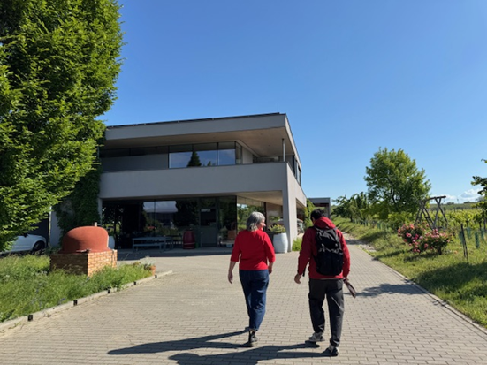 風力発電機のプロペラ塔が無数に並ぶ穀物畑の中を走り、ノイジードル湖に近づくにつれ、一面ブドウ畑が広がっていきます。ゴルス村の町中を過ぎた国道沿いにユーディト・ベックのワイナリーが見えてきます。