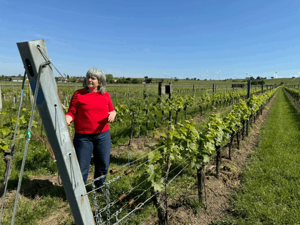 例えば、丘の上の方は砂利質で水はけがよいため、湿気や病害に弱い皮の薄い品種(ピノ・ノワール、ザンクト・ローレント)を、中腹は砂質ロームと石灰質なので晩熟品種を、下部は黒土と砂利で肥沃なため、ツヴァイゲルトや白ブドウ品種を植えています。