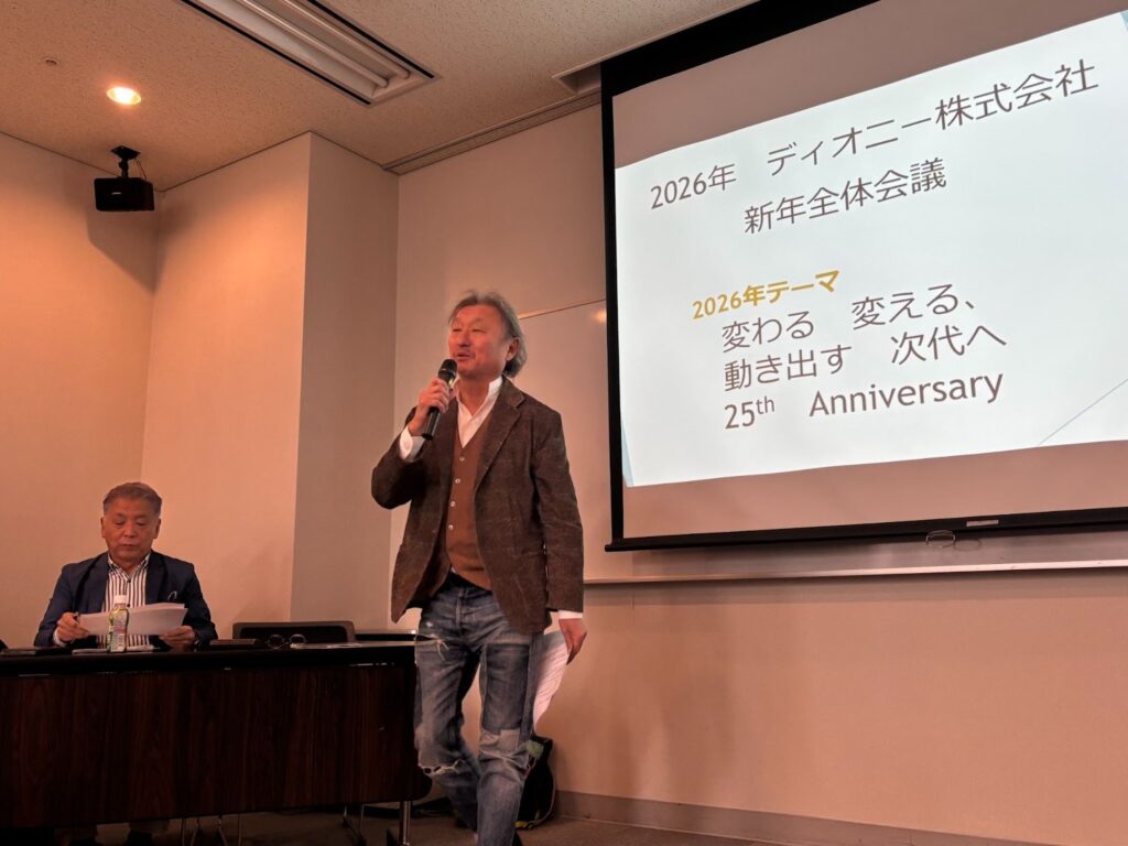 今回の全体会議では、経営陣より「変わる 変える、動き出す 次代へ」という2026年のテーマが発表されました。