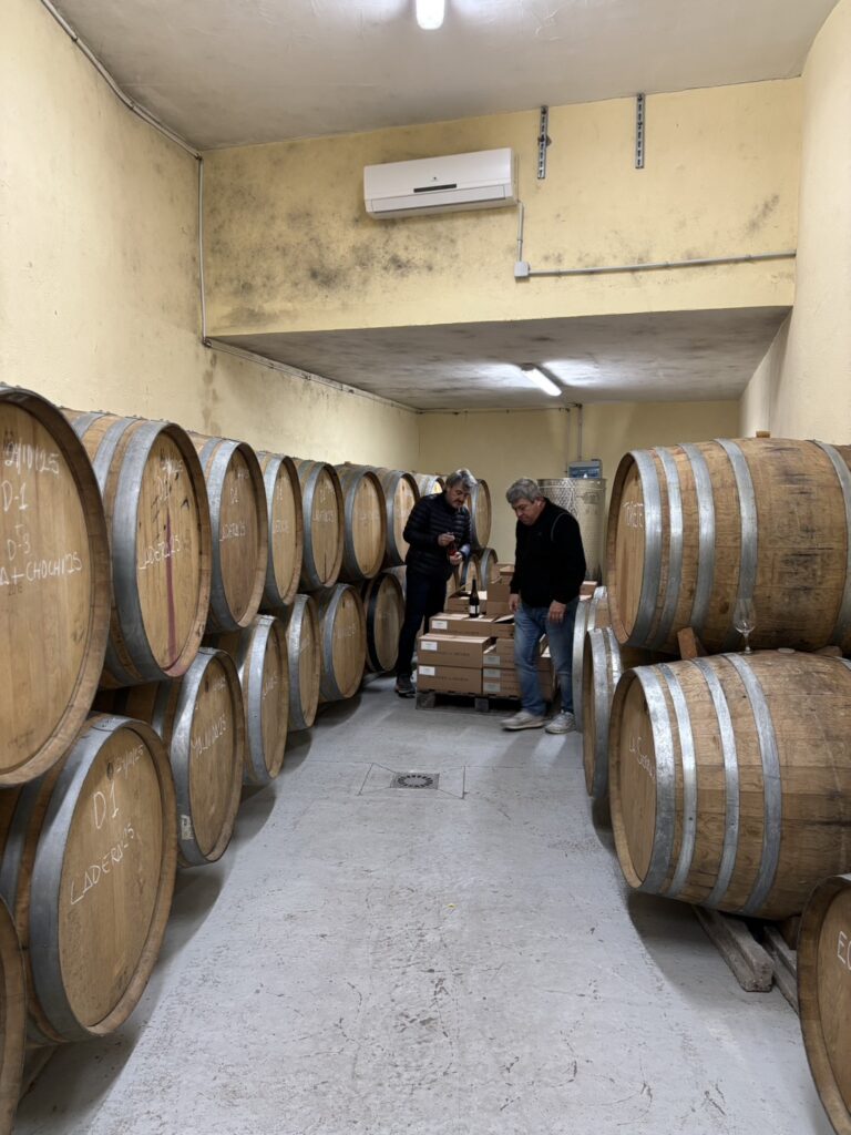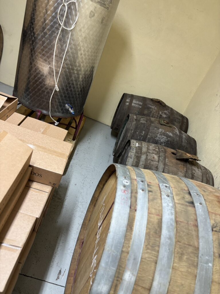 ▲奥の小さな黒い樽は100年前のミゲルのおじいさんからソレラ・システムで継がれてきたワイン