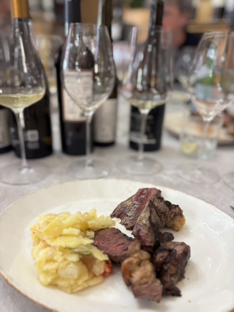 地元の料理と窯で焼いた肉料理が人気のお店のようで、新しいお皿が出るごとに供されるワインも当然現地のものを中心に。